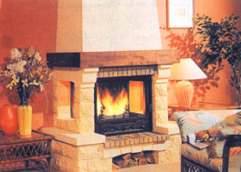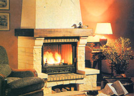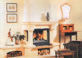 نموذج من الشومينيه (جهاز التدفئة بالهواء الساخن) ضمن ترتيبات مختلفة من الديكورات ، ضمن صالونات الفيلات و الفنادق و المطاعم الكبرى